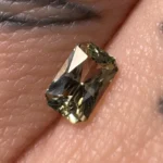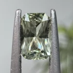 A 0.64ct radiant light green Montana sapphire, measuring 6.01 x 3.85 x 2.78mm. This stone is unheated.