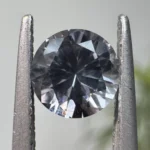A 0.91ct round violetish blue Montana sapphire, measuring 5.95 x 5.97 x 3.79mm. This stone is unheated.