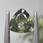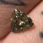 A 1.08ct trillion light yellowish green Montana sapphire, measuring 6.13 x 6.12 x 3.98mm. This stone is unheated.