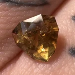 A 2.39ct trillion dark yellow Tanzanian sapphire, measuring 7.8 x 7.8 x 5.5mm. This stone is unheated.