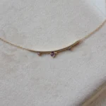This necklace contains one 3mm Uruguayan amethyst cabochon and two round Tanzanian lavender spinel.