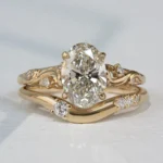 This ring contains approximately 0.11ctw of reclaimed diamonds, GH VS2-SI1 quality.
